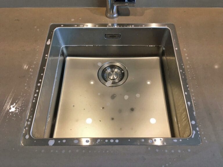 - Applicera sedan en ”bädd” silikon i utskärningen och placera diskhon ovanpå silikonen.